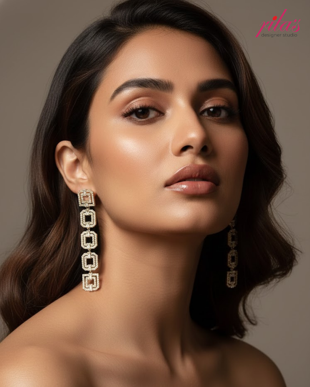 GEOMETRICAL GOLDEN STONE WORK DROP EARRINGS