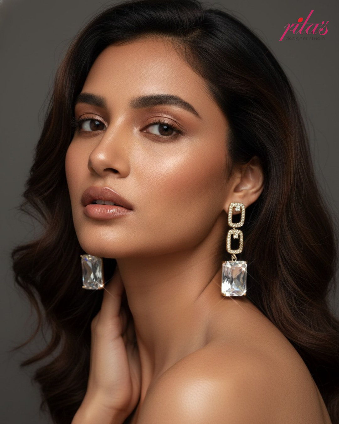 GEOMETRICAL STONE WITH DIAMOND DROP EARRINGS